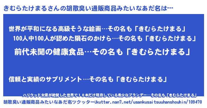 | 意味不明あだ名 | 『永久保存きむらたけまる』 |