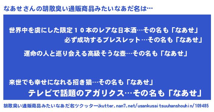 | 意味不明あだ名 | 『なあせフォーエバー』『自称なあせ』 |