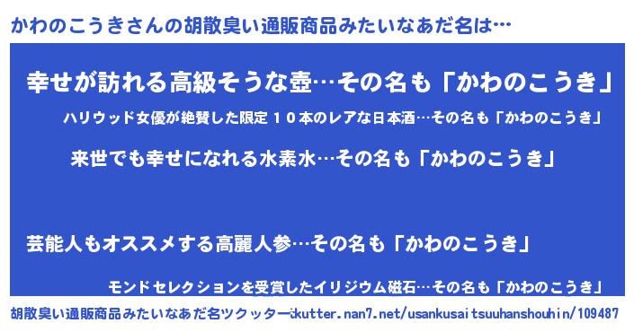 | ヘコむあだ名 | 『かわのこうき(遠い目)』『レバニラ』 |