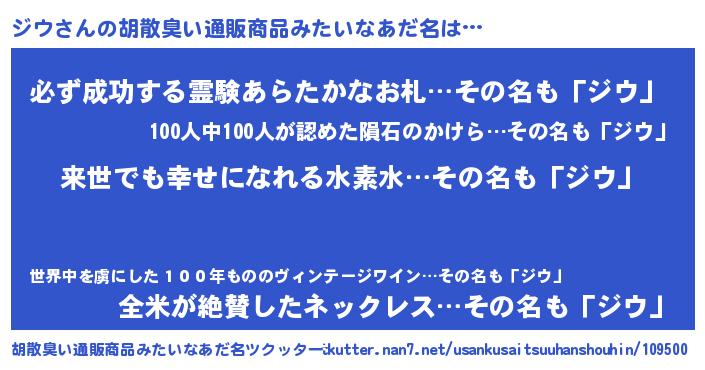 | ポケモン風あだ名 | 『ゼニジウ』『ジウゴンZ』『ヒジウ』 |