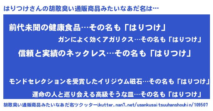 はりつけさんの胡散臭い通販商品みたいなあだ名をツクッター!
