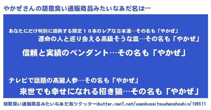 | ポケモン風あだ名 | 『ヒヤカゼ』『ヤーカイ』『ゼニヤカ』 |