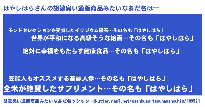 | ヘコむあだ名 | 『はやしはら(笑)』『はや太郎』 |