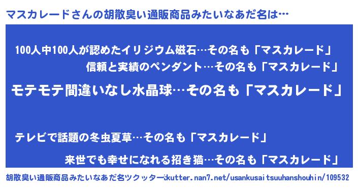 | ヘコむあだ名 | 『マスにゅー』『マスカレード(小並感)』 |