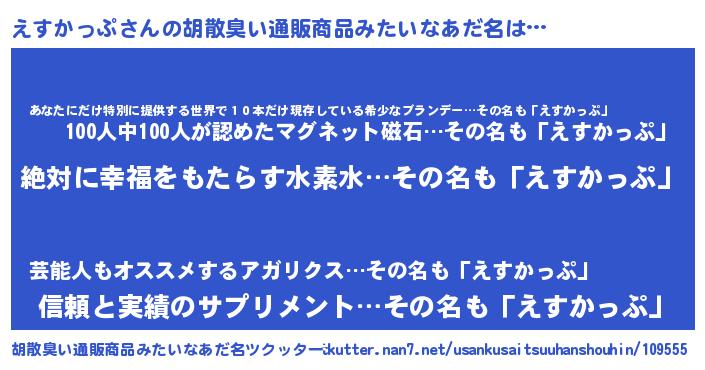 | 意味不明あだ名 | 『永久保存えすかっぷ』『自称えすかっぷ』 |