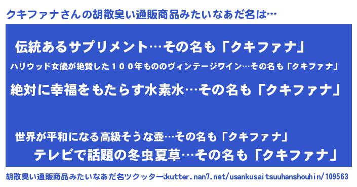| 意味不明あだ名 | 『永久保存クキファナ』『自称クキファナ』 |