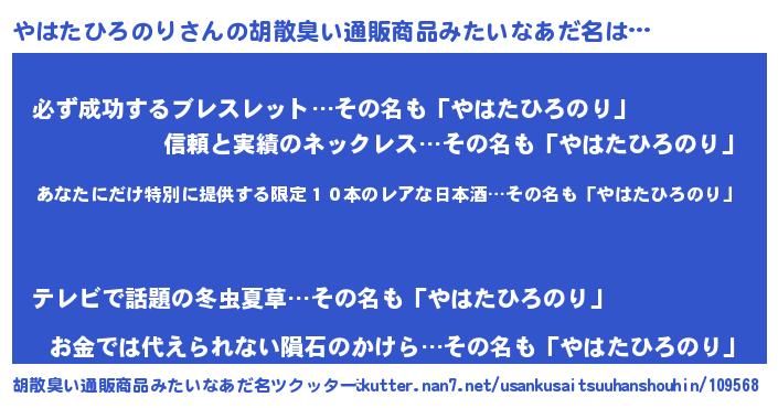| 伝説のあだ名 | 『封印されし傭兵やはたひろのり』 |