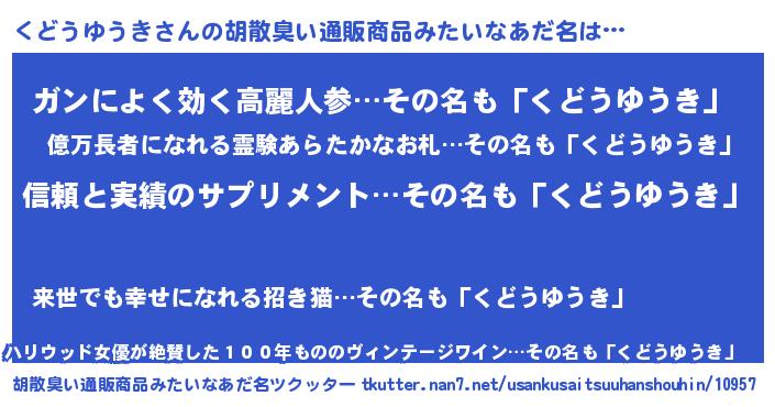 | 意味不明あだ名 | 『とにかく怪しいくどうゆうき』 |