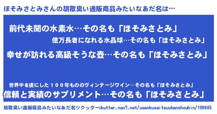 | 肩書あだ名 | 『ほそみさとみ大統領』 |