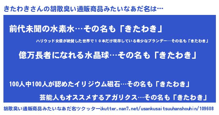 | ヘコむあだ名 | 『きたふぇ~』『きたわき(遠い目)』 |