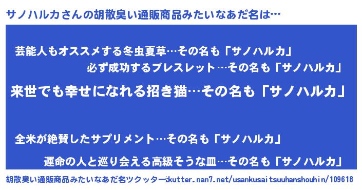| 意味不明あだ名 | 『永久保存サノハルカ』『自称サノハルカ』 |