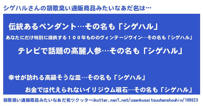 | ヒーロー風カッコイイあだ名 | 『最強戦士シゲハル』『銀牙騎士シゲ』 |