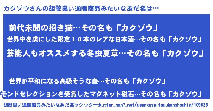 | 意味不明あだ名 | 『自称カクゾウ』『永久保存カクゾウ』 |