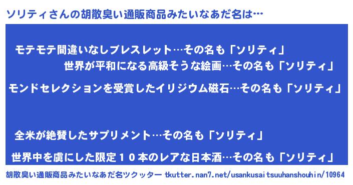 | ヒーロー風カッコイイあだ名 | 『慈愛の使者ソリティ』『仮面ソリダー』 |