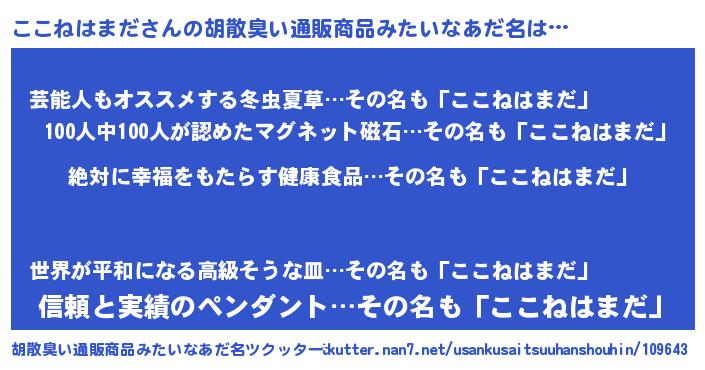 | ヘコむあだ名 | 『ここねはまだ(笑)』『ここっちょ』 |
