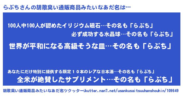 | ヒーロー風カッコイイあだ名 | 『ウルトラらぶちマン』『愛の使者らぶち』 |