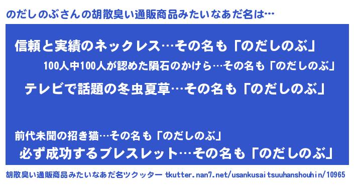 | 意味不明あだ名 | 『自称のだしのぶ』『ペロリンのだしのぶ』 |
