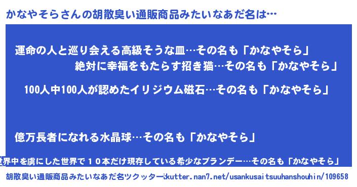 | ヘコむあだ名 | 『牛乳』『かなやそら(震え声)』 |
