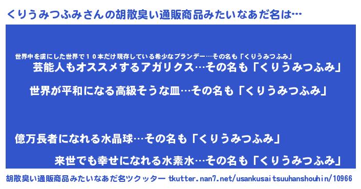 | ヘコむあだ名 | 『豆乳』『くりうみつふみ(遠い目)』 |