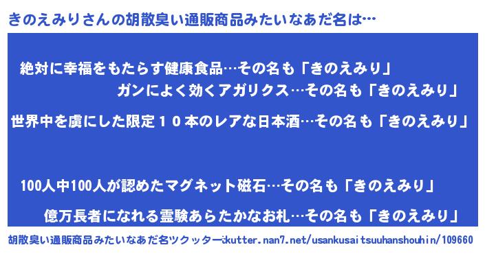 | ヘコむあだ名 | 『きのえみり(笑)』『きのもー』 |