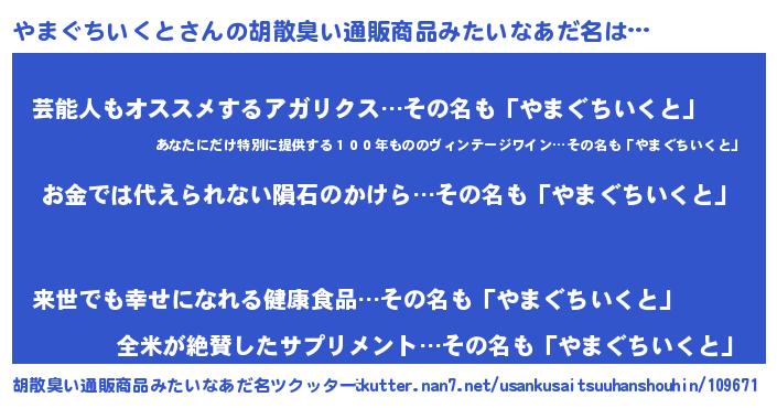 | 肩書あだ名 | 『やまぐちいくと上級大将』 |