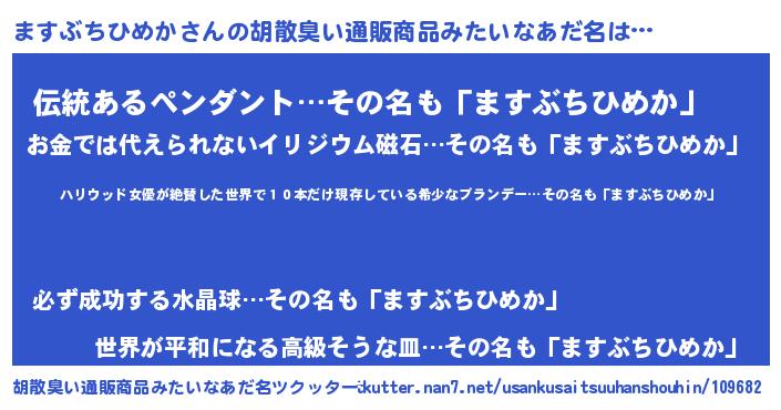 | 意味不明あだ名 | 『住所不定無職ますぶちひめか(93歳)』 |