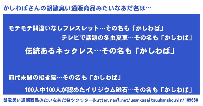 | 恥ずかしいあだ名 | 『カシリンリン』『プリティーかしわば』 |