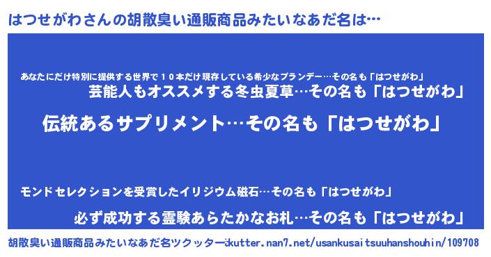 | 意味不明あだ名 | 『とにかく怪しいはつせがわ』 |