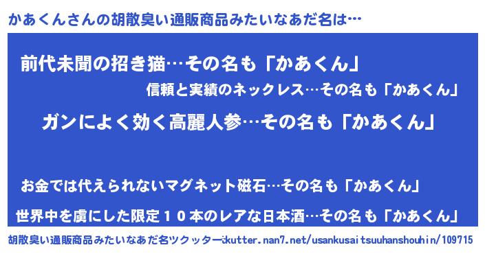 | ヘコむあだ名 | 『かあくん(小並感)』『かあお』 |