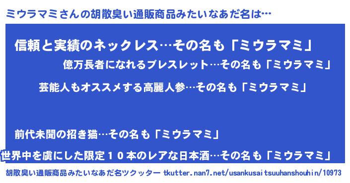 | 意味不明あだ名 | 『自称ミウラマミ』『ペロリンミウラマミ』 |