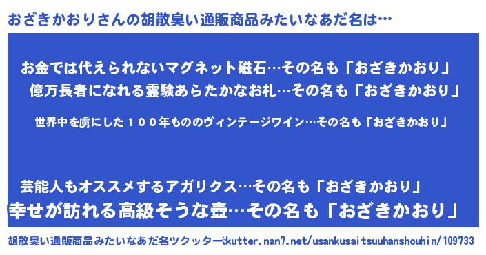 | ヘコむあだ名 | 『なまこ酢』『おざにゅー』『おざを』 |