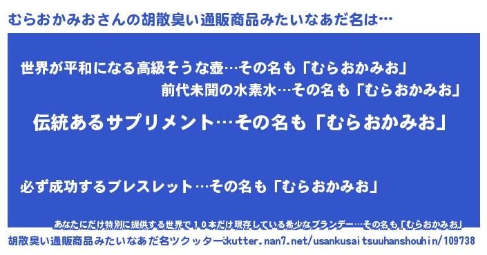 | 意味不明あだ名 | 『とにかく怪しいむらおかみお』 |