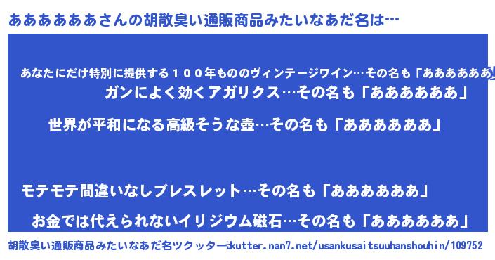 | 欧米人風あだ名 | 『ああああああクリステル』 |