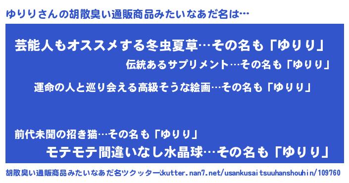 | ヘコむあだ名 | 『酢こんぶ』『ゆりっふぃ~』 |