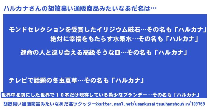 | 欧米人風あだ名 | 『ハルカナ・ステッグマイヤー』 |