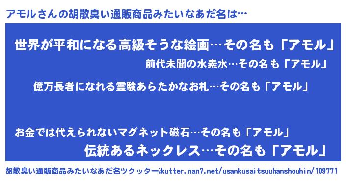 | ヘコむあだ名 | 『アモもー』『酢こんぶ』『アモを』 |