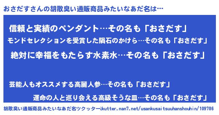 | 男性向けラノベタイトル風あだ名 | 『はたらくおさだすさま!』 |