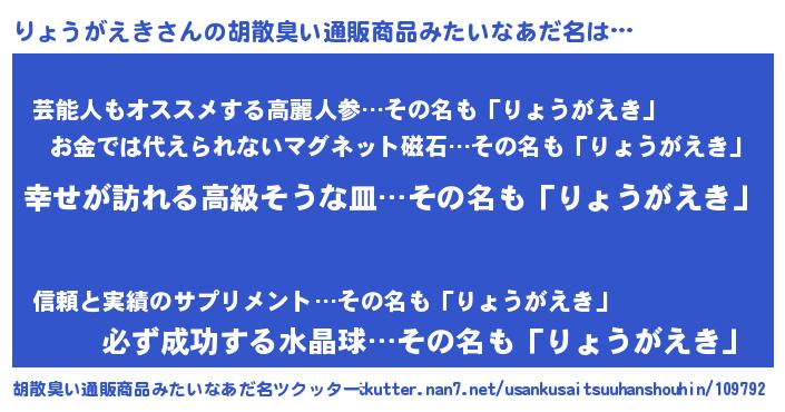 | 意味不明あだ名 | 『りょうがえきフォーエバー』 |