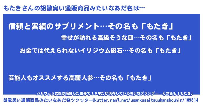 | ヒーロー風カッコイイあだ名 | 『愛の使者もたき』『黄金騎士モタ』 |
