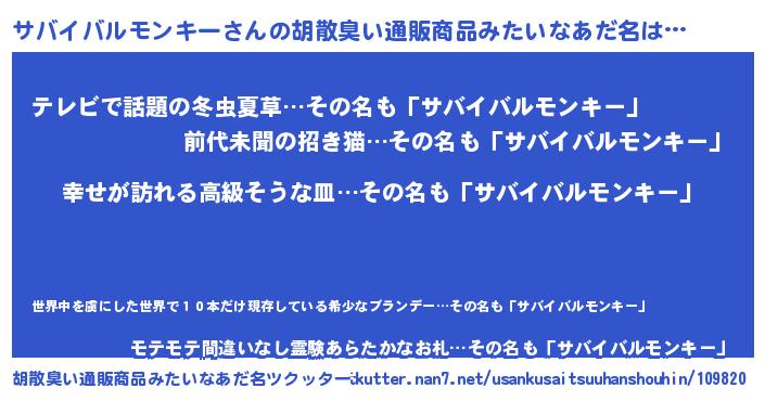 | 意味不明あだ名 | 『サバイバルモンキーフォーエバー』 |