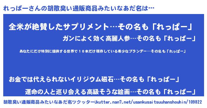 | 意味不明あだ名 | 『住所不定無職れっぱー(81歳)』 |