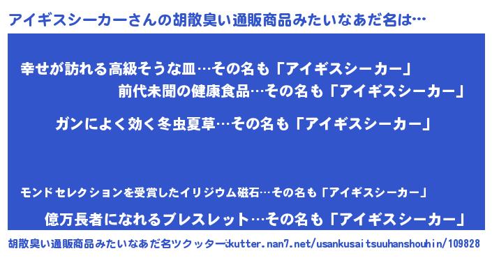 | 意味不明あだ名 | 『自称アイギスシーカー』 |