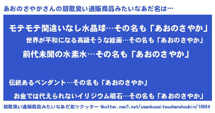 | ヘコむあだ名 | 『あおのさやか(苦笑)』『あおにゅー』 |