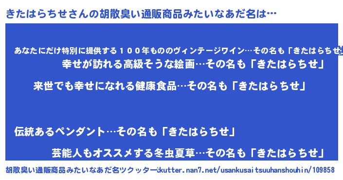 | ヘコむあだ名 | 『きたはらちせ(苦笑)』『酢こんぶ』 |
