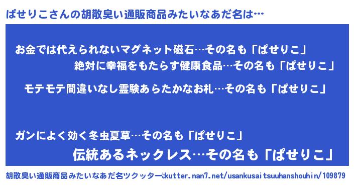 | 意味不明あだ名 | 『ペロリンぱせりこ』『永久保存ぱせりこ』 |