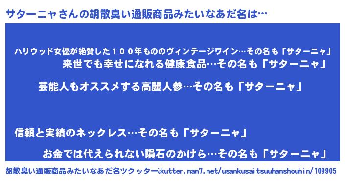 | 恥ずかしいあだ名 | 『サターニャデラックス』『サタちん』 |