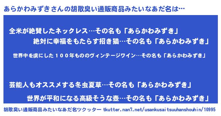 | 欧米人風あだ名 | 『ダレノガレあらかわみずき』 |