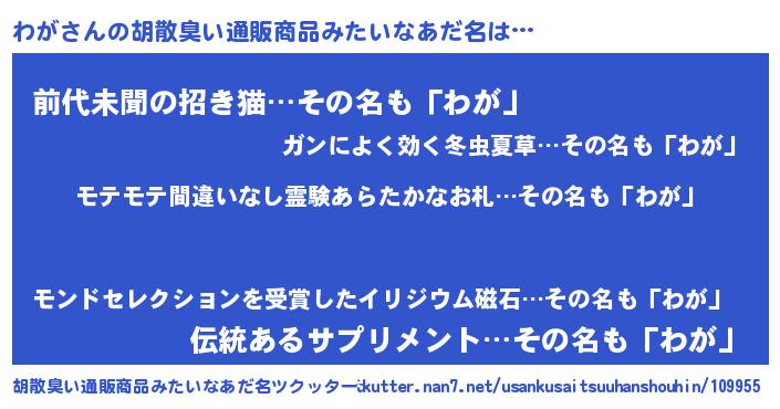 | 2回繰り返すあだ名 | 『わがわが』『けちょんけちょん』 |
