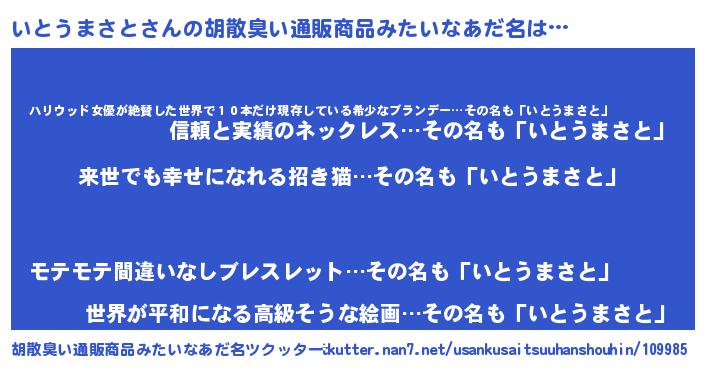 | 意味不明あだ名 | 『永久保存いとうまさと』 |