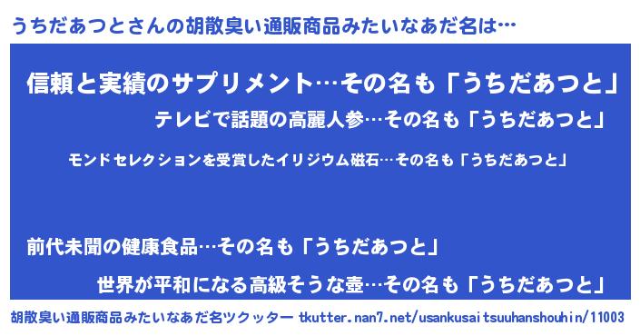 | 伝説のあだ名 | 『救世主となる占い師うちだあつと』 |